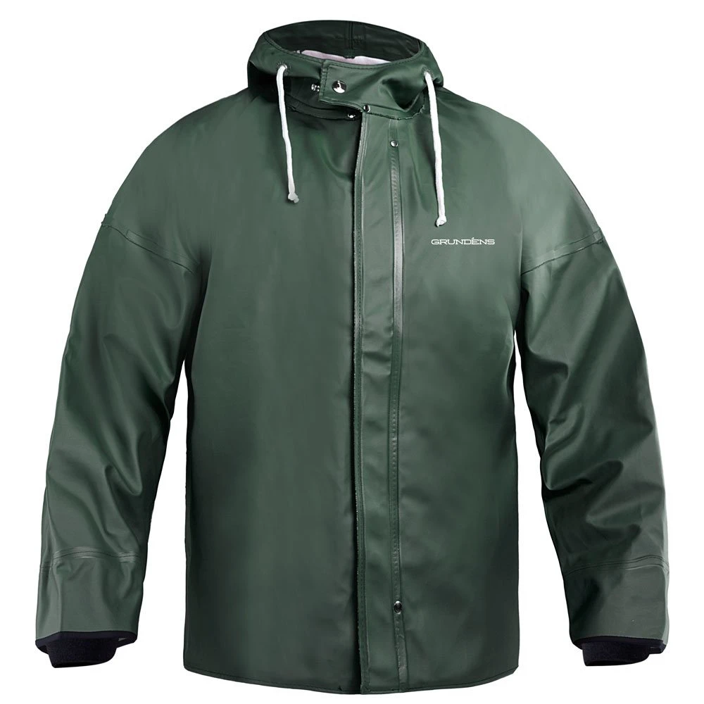 Grundens Brigg 44 Parka is the fishing industry’s best selling foul weather top. Hands down. From commercial fisherman, to roughnecks, to lumberjacks – everyone loves the Brigg 44. Our most recommended parka, the Brigg 44 features sturdy 15.6 oz/yard PVC/cotton tweed construction, and comes with hidden neoprene cuffs to keep your arms bone-dry, even during the most intense squalls. Featuring an attached hood with draw cord, double-secure storm flap guarding the snap closure, and Grundens’ specially designed cape sleeves to support a full range of motion while working.