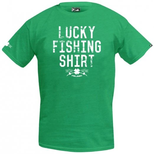 Pelagic Lucky Short Sleeve T-Shirt are green (of course) and are available in M-XXL. It pairs perfectly with the Pelagic Lucky Snapback.Â